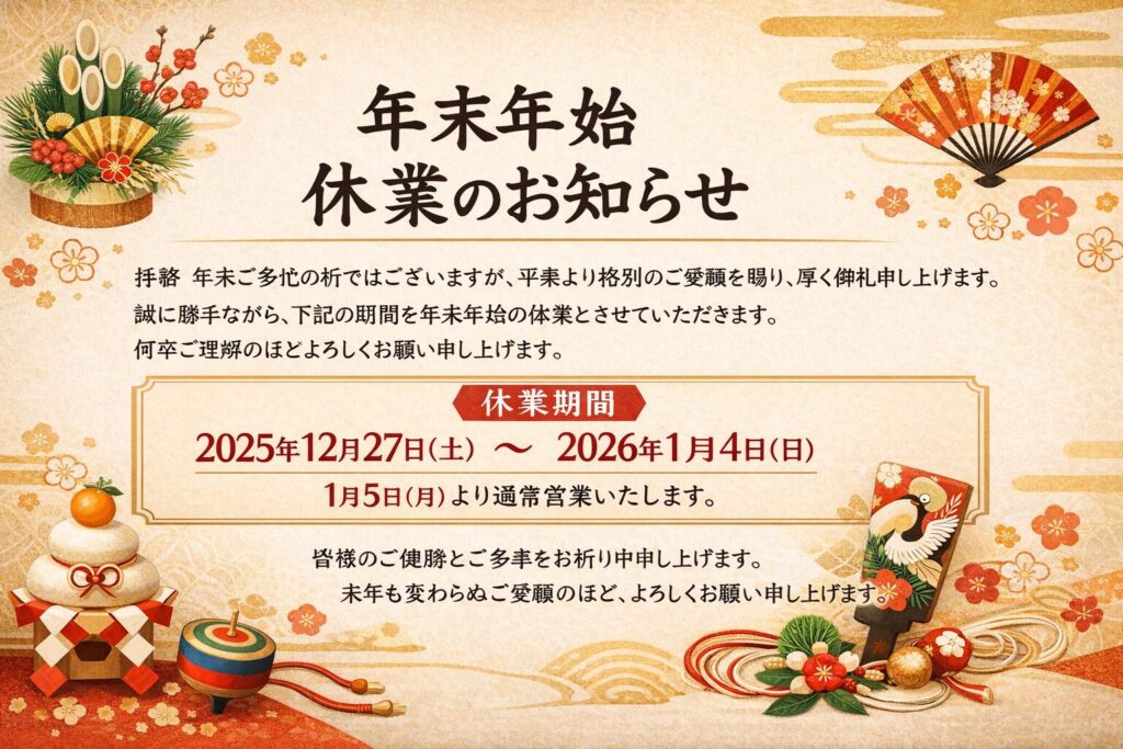 年明けは1月5日(月)からの営業となります。2026年も相続・生前対策の司法書士事務所LEGAL FRONTとして、多くのお客様のサポートを!!